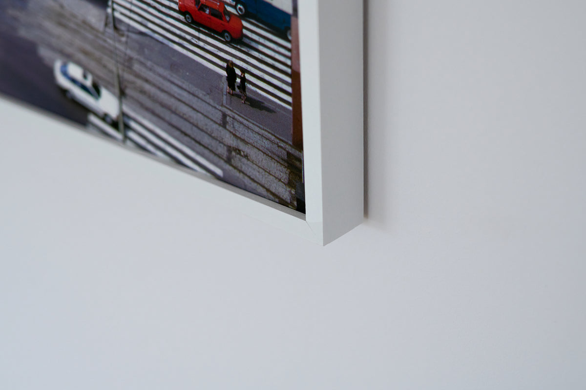 Wydruk oprawiony w drewnianą ramę w kolorze białym