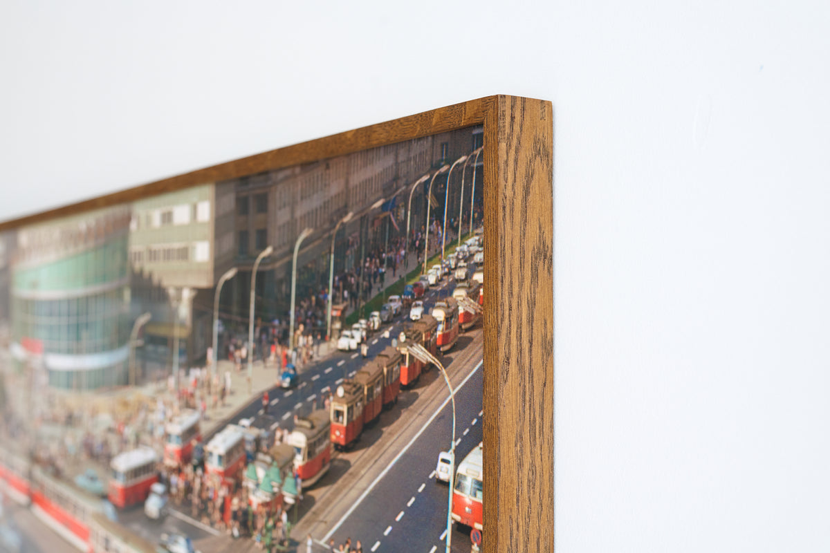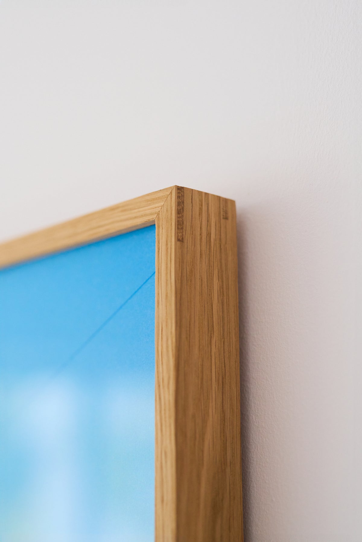 Każdą ramę wykonujemy ręcznie w Polsce, wykorzystując w tym celu sezonowane drewno najwyższej jakości. Stosujemy plecy bezkwasowe, które nie powodują żółknięcia wydruku. Od strony frontowej wydruk chroni osłona z tworzywa typu pleksi.